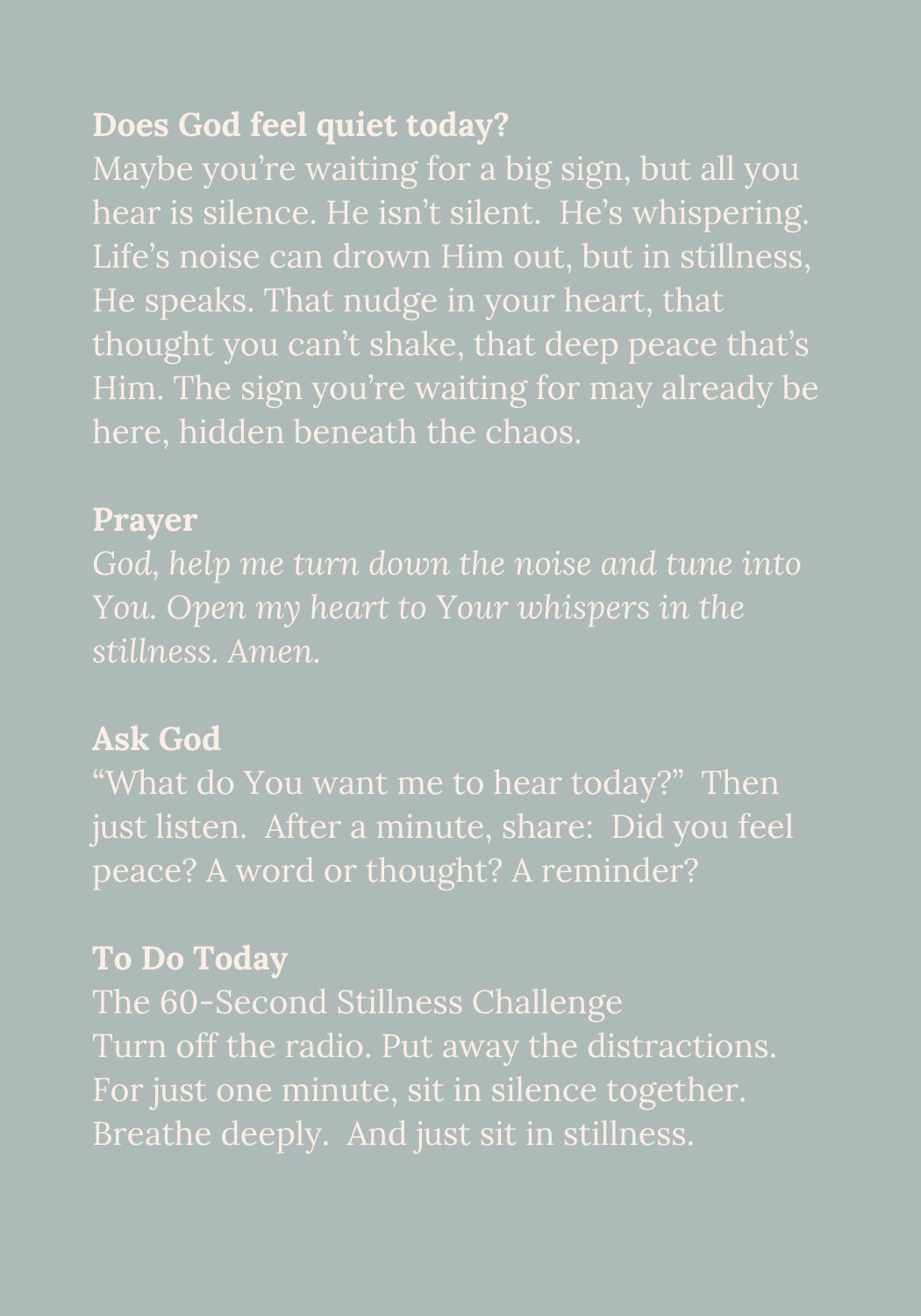 In the middle of the chaos, the carpool lines, the meal planning, and the never-ending to-do lists, it can be hard to slow down—let alone hear from God. But here’s the truth: God is always speaking. He’s ready to comfort, guide, and answer our deepest questions… we just have to pause long enough to listen.