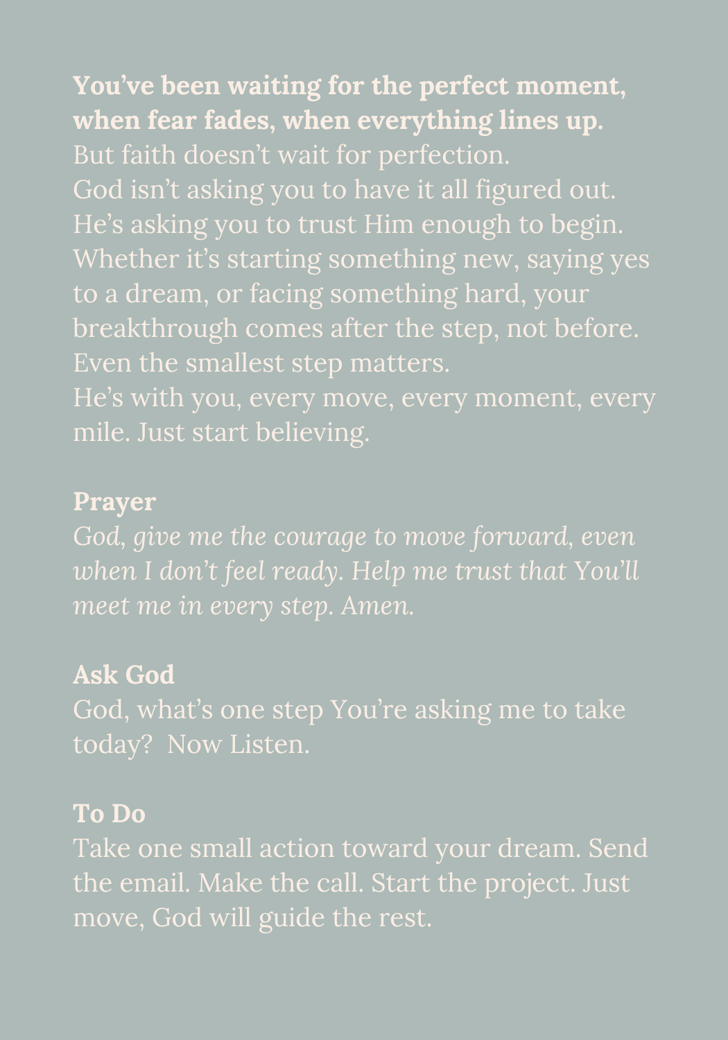 Use them in the car, during your quiet time, or anytime your soul needs a reset. Journal what you hear, reflect on what He shows you, and let these daily whispers become a rhythm of grace in your life.